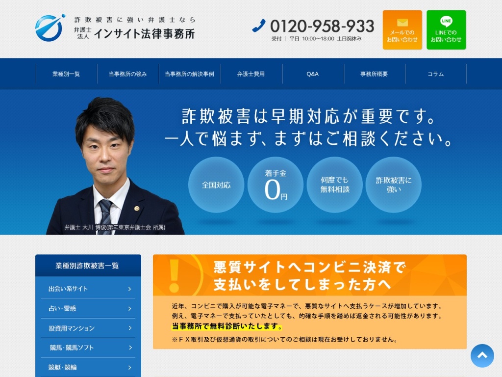 また、占い詐欺の被害に遭ってしまった場合には、早急に専門家への相談が重要です。インサイト法律事務所では、こうした詐欺被害の解決に向けた法的サポートを提供しています。